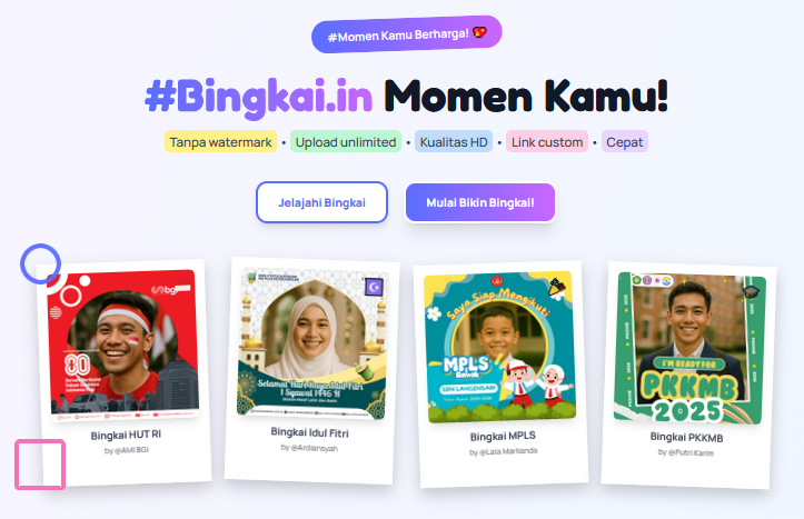 Dengan panduan desain bingkai untuk media sosial di atas, kita bisa mulai menerapkannya langsung ke konten yang kita buat sehari-hari. Supaya prosesnya lebih praktis, ada juga platform seperti Bingkai.in yang memungkinkan kita membuat bingkai foto digital secara online tanpa watermark. Cara ini cocok buat kita yang ingin fokus ke tampilan visual tanpa harus repot dengan aplikasi desain atau pengaturan teknis.